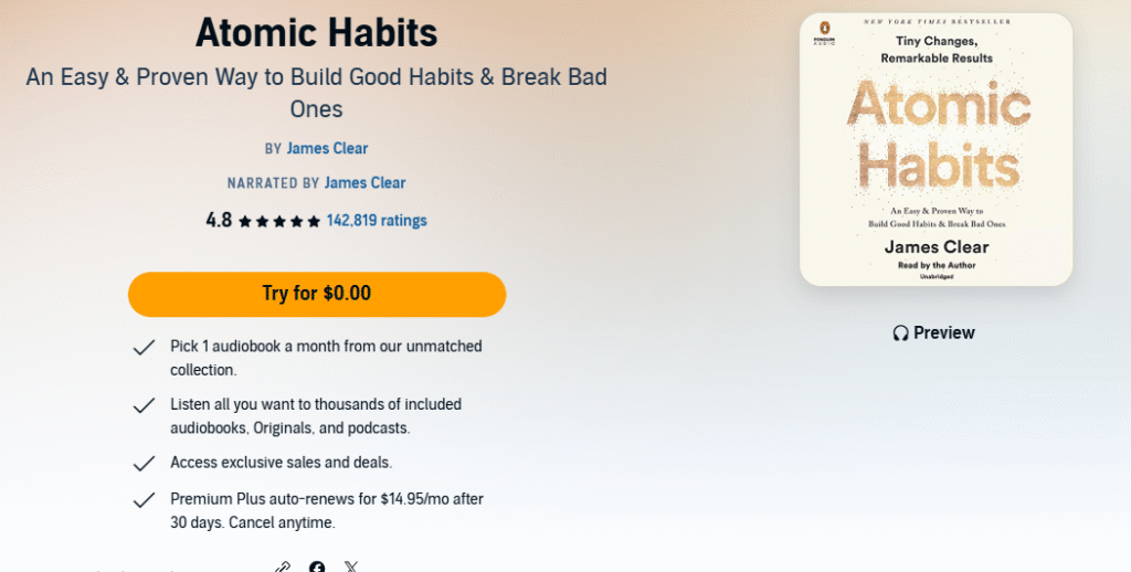 - 🎧 Listen to the Full Audiobook on Audible — Hear the insights in James Clear’s own voice and absorb them on the go.